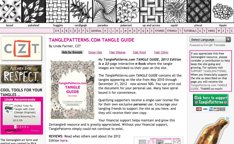 I just bought the download for the 2013 tangle pattern guide. What a great reference when you’re tangling and get a bit stuck or need a new straight or curvy tangle to complete your work.