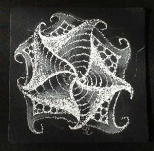 I had fun with this challenge to create a Zentangle using pointillism and played around with the black tiles for my submission. Fengle is a new favourite of mine and it turned out ok.