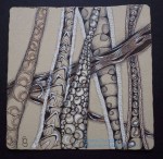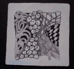 I saw a design, a fleeting glance as I passed by and it stuck. I don’t think this really captures the original design I saw but as I drew it worked nicely into a tangle. I am calling it Ubble as it reminds me of a bubble, inside a bubble. Suzanne McNeill has already tangled and named a tangle bubble and although they are similar Ubble has a more organic feel and with the tangelations looks quite different. The zentangle characteristic of going behind can really make a difference in how this tangle comes out. Very fun to play with.