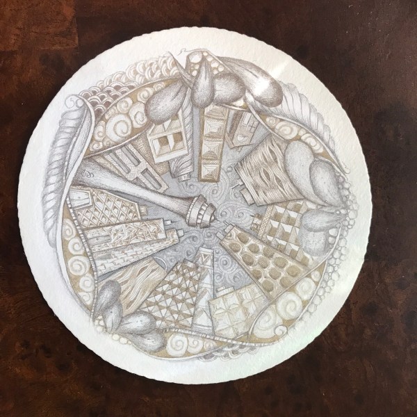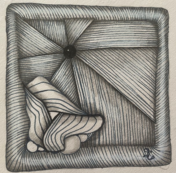 One of my tangles trivolution was chosen for the January 19 date. I deconstructed this tangle in 2013 as I sat in a sunbeam tangling. My room divider was off to the side and thought I’d give it a try as a tangle and one tangle lead to another as I changed up from the original circle center to a triangle, square and oval. Hope you enjoy the challenge and tangle fragments!